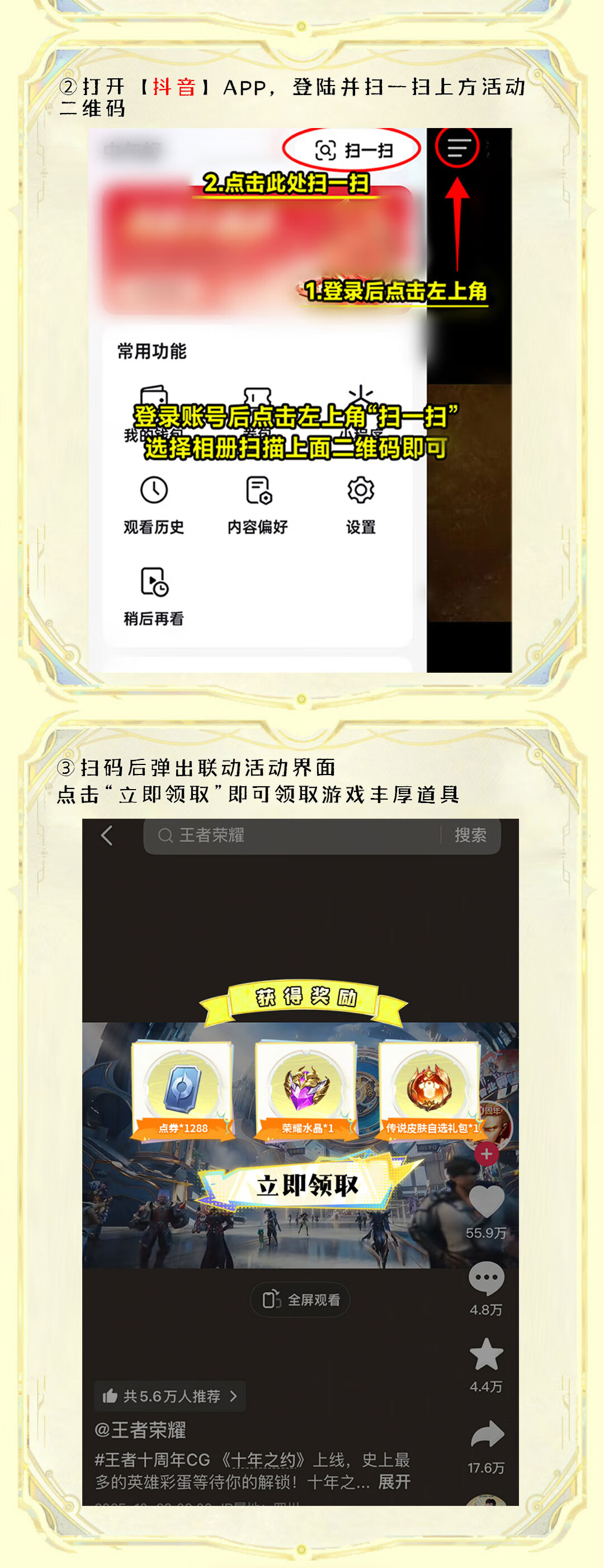 《王者荣耀》十周年活动礼包,领取失败:请完成以下任务再领取